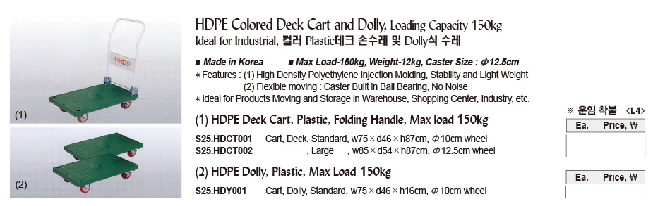 HDPE Colored Deck Cart and Dolly, Loading Capacity 150kgIdeal for Industrial, 컬러 Plastic데크 손수레 및 Dolly식 수레