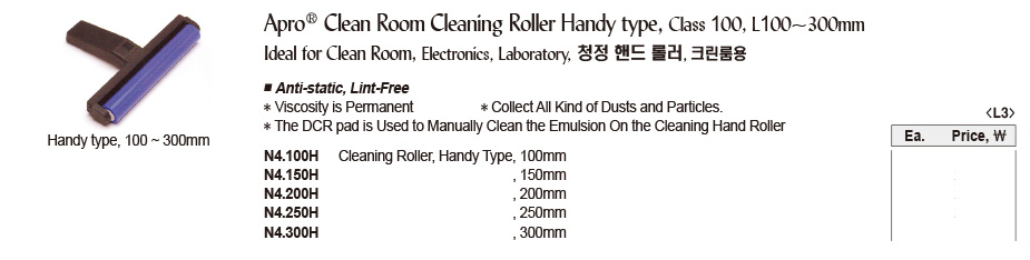 Apro® Clean Room Cleaning Roller Handy type, Class 100, L100~300mmIdeal for Clean Room, Electronics, Laboratory, 청정 핸드 롤러, 크린룸용