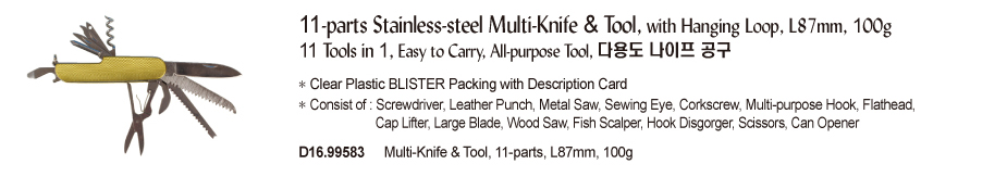 11-parts Stainless-steel Multi-Knife & Tool, with Hanging Loop, L87mm, 100g11 Tools in 1, Easy to Carry, All-purpose Tool, 다용도 나이프 공구