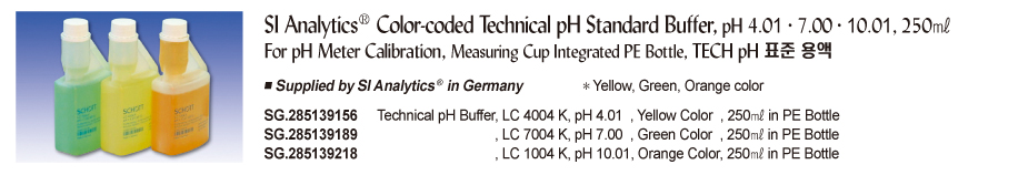SI Analytics® Color-coded Technical pH Standard Buffer, pH 4.01·7.00·10.01, 250㎖For pH Meter Calibration, Measuring Cup Integrated PE Bottle, TECH pH 표준 용액