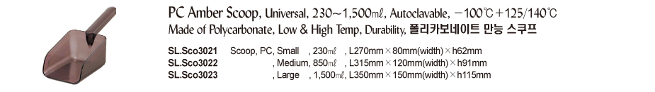 PC Amber Scoop, Universal, 230~1,500㎖, Autoclavable, -100℃+125/140℃Made of Polycarbonate, Low & High Temp, Durability, 폴리카보네이트 만능 스쿠프