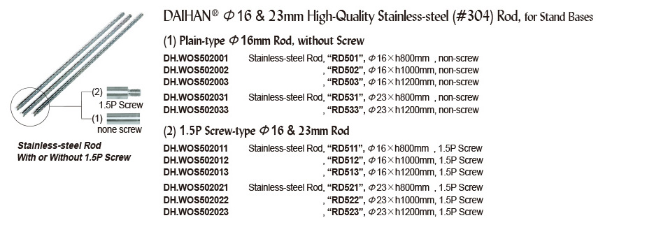 DAIHAN® Φ16 & 23mm High-Quality Stainless-steel (#304) Rod, for Stand Bases