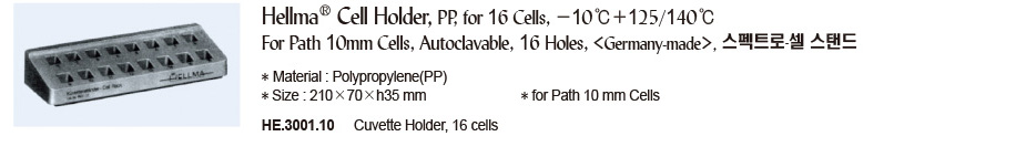 Hellma® Cell Holder, PP, for 16 Cells, -10℃+125/140℃ For Path 10mm Cells, Autoclavable, 16 Holes,
